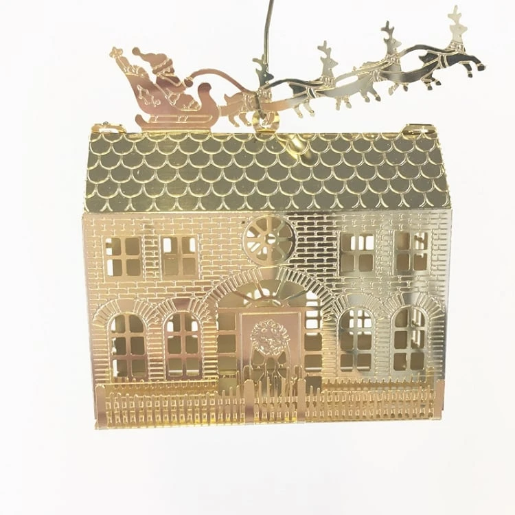 Hallmark Ornament. Dimensions: 2″ H. Etched brass house that lights up when attached to a standard miniature light strand. (Issued 1985 & 86)