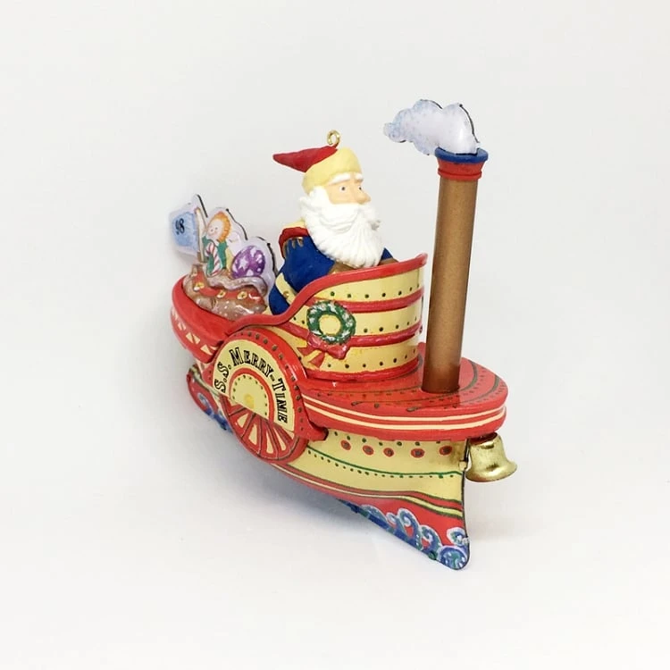 Hallmark Ornament. Artist: Ken Crow. Santa loves the tropic climate, He thinks it’s just sublime! He doesn’t need his sleigh – He’s got the SS Merry-Time!