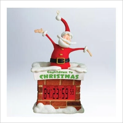 Hallmark Tabletop Decoration. Dimensions: 5 1/2″ H, Artist: This battery operated ornament has a touch screen that counts down the days, hours, minutes, and seconds until Christmas. This is the tabletop.. register to win piece.