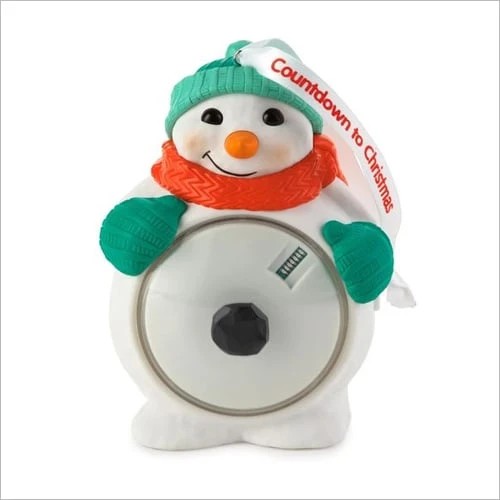 Hallmark Ornament. Dimensions: , Artist: Tracy Larsen. The snowman’s belly lights up with the days until Christmas with the press of a button.